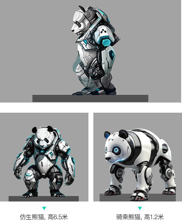 旨在将AI人工智能、生物拟态、机甲技术相融合,赋予机甲以熊猫造型的生物外观,通过数字中央控制系统,控制AI机甲的动作、语言、灯光系统,让憨态可居的国宝大熊猫,成了酷炫的AI熊猫机甲。